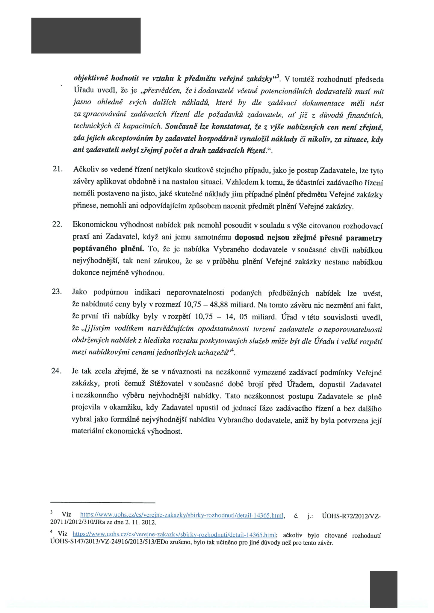 Listopad 2017 – ÚOHS zahájil správní řízení kvůli neurčitosti zadání
