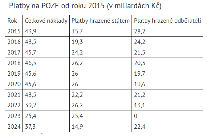 Stát na sebe v příštím roce stoprocentně převede financování podporovaných zdrojů energie (POZE). Státní rozpočet pro rok 2026 to nově zatíží dalšími zhruba 17 miliardami korun, celkově tak stát za vícenáklady obnovitelných zdrojů a tepláren zaplatí přes 40 miliard korun. Něco podobného již české domácnosti a firmy zažily v roce 2023. Náklady na POZE tehdy zcela hradil stát z rozpočtu.