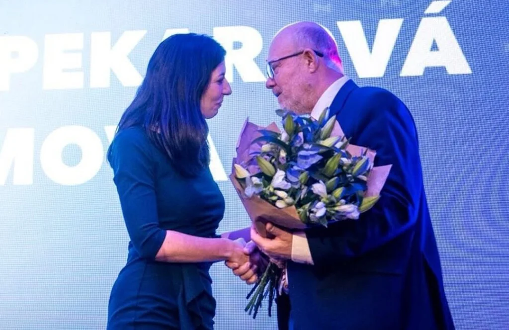 Zástupci TOP 09 i dalších politických stran poděkovali Markétě Pekarové Adamové za deset let v čele TOP 09. Na snímku je Pekarová Adamová s prvním místopředsedou TOP 09 a ministrem zdravotnictví Vlastimilem Válkem. Foto: TOP 09