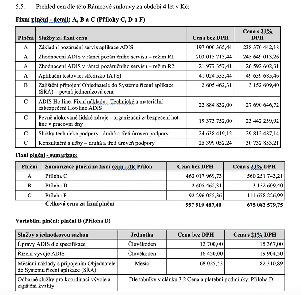 Lukáš Heřtus z tiskového oddělení Generálního finančního ředitelství potvrdil podezření, že jde o dvě částky. „Jsou to dvě různé částky ze dvou smluv. 675 mil. je plnění, které vychází z veřejné zakázky – z rámcové dohody – jedná se o fixní výdaje na provoz ADIS na 48 měsíců. 750 mil. je částka uvedená ve smlouvě o smlouvě budoucí na převod majetkových práv autorských z IBM na GFŘ – jde o částku, kterou GFŘ postupně musí utratit v letech 2020 – 2023 za služby IBM, aby IBM převedla bezúplatně majetková práva autorská na GFŘ,“ uvedl Heřtus. Z původního „bezúplatného“ převodu se tak stává převod za 750 milionů. Nic na tom, že to je suma, kterou GFŘ v průběhu tří let utratí a nezaplatí ji jednorázově.