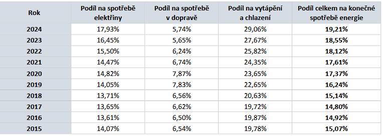 Podíl obnovitelných zdrojů v Česku
