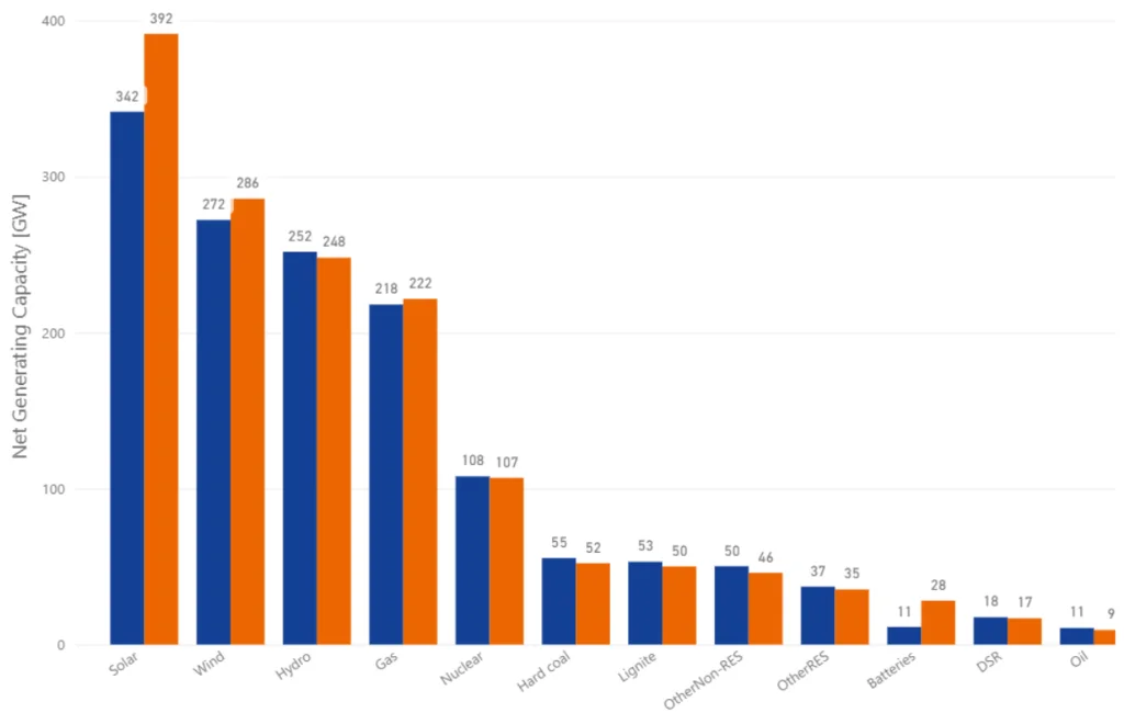 Jak dále uvádí ENTSO-E v analýze, výkon fotovoltaických elektráren v Evropě (tím je míněn celý kontinent bez Ruska a Běloruska, ale včetně Turecka) za poslední rok vzrostl o 50 na 392 gigawattů (GW). Instalovaný výkon větrných elektráren se zvýšil o 14 GW na 286 GW. Na druhou stranu za posledních dvanáct měsíců z trhu zmizely uhelné elektrárny a zdroje na topné oleje o výkonu téměř 12 GW. To je zhruba 10 procent z loňského výkonu těchto zdrojů.