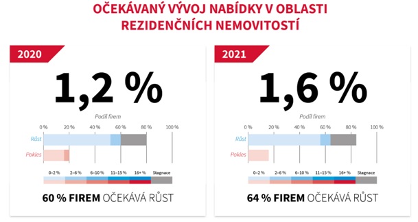 Developeři očekávají růst nabídky nemovitostí v letošním roce o 1,2 % v rámci celé republiky a o 2,3 % v Praze. Developeři neočekávají, že by se korona virová krize výrazněji projevila na nabídce nemovitostí i v následujícím roce, kde očekávají nabídku dokonce větší než v roce letošním. Pro rok 2021 developeři predikují další růst na straně nabídky nemovitostí, a to o 1,6 % v rámci celé ČR a o 2,5 % v hlavním městě Praze. Marcel Soural, předseda představenstva společnosti Trigema a.s. k současné situaci dodává, že trh s nemovitostmi je stabilním a výhodným způsobem investice: „Poptávka po bydlení zůstává vysoká. Do budoucnosti lze navíc počítat i se silnějším zájmem ze strany fondů a dalších větších investorů. Investice do rezidenčních nemovitostí jsou dnes jedním z nejvýhodnějších způsobů, kam volné finanční prostředky uložit. Jejich hodnota neustále roste.“