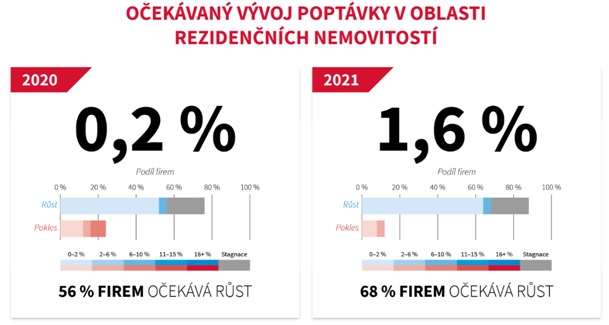 Na straně poptávky po nemovitostech developeři očekávají stále růst, ačkoli pro tento rok velmi malý. Poptávka bude podle dotázaných developerů letos ve výši 0,2 %, a to jak v rámci celé republiky, tak v Praze. S vyšší poptávkou ale počítají pro rok 2021, kdy v rámci ČR očekávají poptávku ve výši 1,6 %, v Praze potom vyšší, a to ve výši 1,9 %.