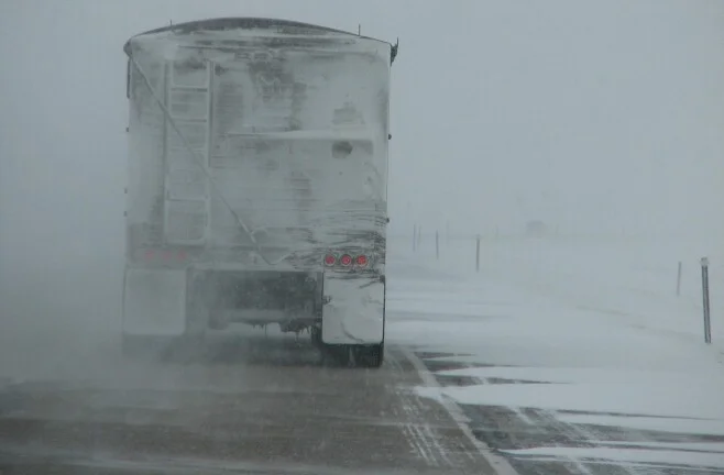 Národní dopravní informační centrum upozornilo, že kamiony kvůli větru a silnému sněžení uvízly například ve směru na Brno od 99. kilometru ve stoupání k Větrnému Jeníkovu. Podobné problémy panují i v opačném směru od 112. kilometru.