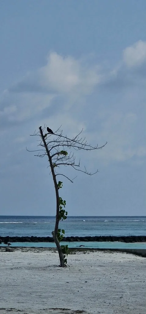 Jsme skupinka, rodina se dvěma dětmi, dcerami ve věku 11 a 14 let, a babičkou, které je 75 let. Přiletěli jsme 20. února se společností Air Arabia s přestupem v Sharjah na letiště v Malé. Odtud jsme jeli lodí na ostrov Thoddoo. Ten ostrov je bez resortů, najdete tam pouze guest-housy. Já jsem zde už jednou byl, asi před deseti lety. Tři bratři, kteří vlastní jeden z nich, mi udělali dobrou cenu, protože jsem jim kdysi pomáhal s tvorbou jejich webů. Dovolená proběhla klidně a levně. Krásně tyrkysové moře už ale nebylo jen naše, bylo najednou plné turistů. I tak to ale bylo krásné. Spousta exotického ovoce, kterého je na tomto ostrově dostatek, nám vynahrazovala abstinenci. Na Maledivách alkohol povolují pouze v resortech.