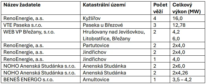 Je jich devatenáct a vyrůst mají na sedmi lokalitách na Přerovsku, Znojemsku, Svitavsku, Sokolovsku a Českolipsku. Tolik větrných elektráren je v současné době v poslední fázi schvalování, tedy s podanou žádostí investora o vydání stavebního povolení.