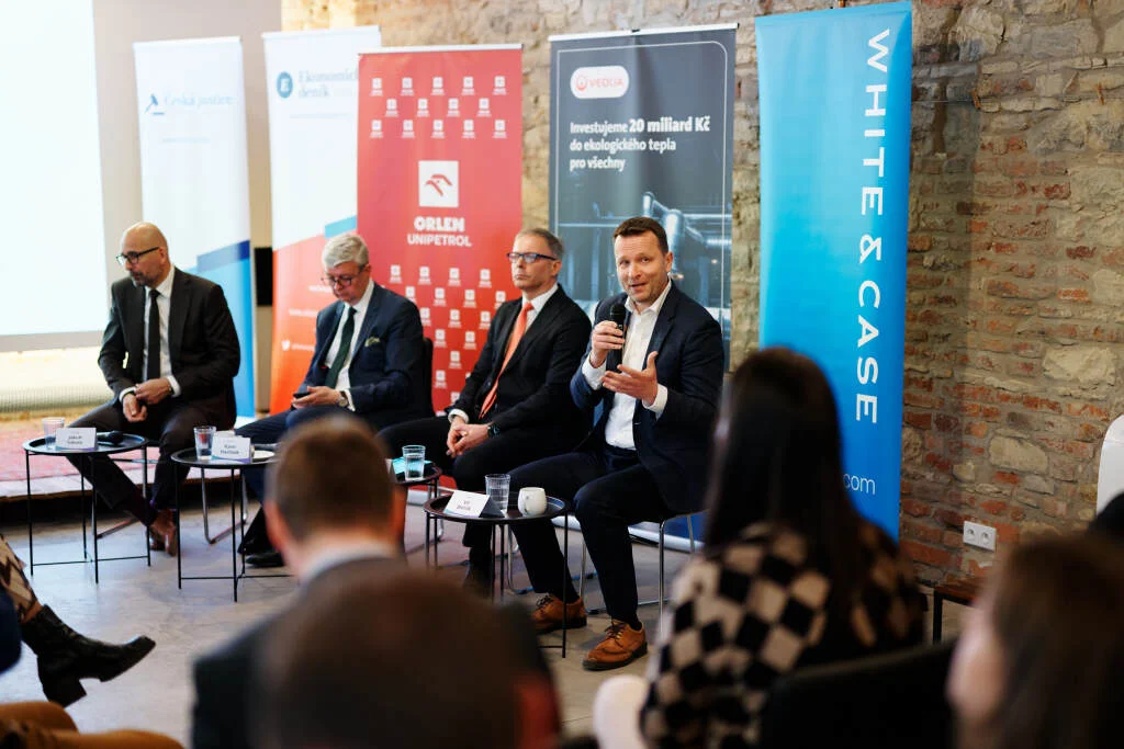 Na konferenci Právo a energetika spolu diskutovali (zleva): obchodní ředitel Veolie Jakub Tobola, vicepremiér Karel Havlíček, šéf společnosti Orlen Unipetrol Mariusz Wnuk a vedoucí partner právní kanceláře White & Case Vít Stehlík. Foto: Radek Čepelák