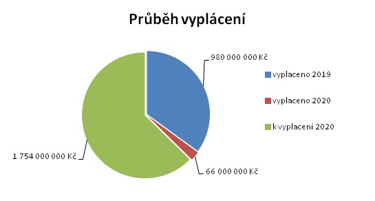Podle zásad dotačního programu má být o uplatněných žádostech rozhodnuto do 30. června, ve stejné lhůtě pak mají být žádosti i vyplaceny. Podle usnesení vlády ze dne 30. července 2019 č. 548 mohlo Ministerstvo zemědělství již v roce 2019 na výplatu uplatněných žádostí čerpat z vládní rozpočtové rezervy až 1,5 mld. Kč a v roce 2020 pak uplatnit požadavek na zbývající část do celkové výše 2,5 mld. Kč ze stejného zdroje. Ministerstvo zemědělství ještě v roce 2019 vyplatilo 980 mil. Kč a na počátku roku 2020 dalších 66 mil. Kč; celkem tedy bylo dosud vyplaceno 1,046 mld. Kč.