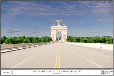 Trump už dříve uvedl, že chce postavit „největší oblouk ze všech„. Navrhovaná stavba by svou výškou výrazně převyšovala Lincolnův památník a byla by zhruba poloviční oproti Washingtonovu monumentu ve tvaru obelisku. Zároveň by to byl největší federální památník postavený ve Washingtonu od výstavby Jeffersonova památníku v roce 1943. Některá média ho proto ironicky překřtila z triumfálního (vítězného) oblouku na Trumpův oblouk.