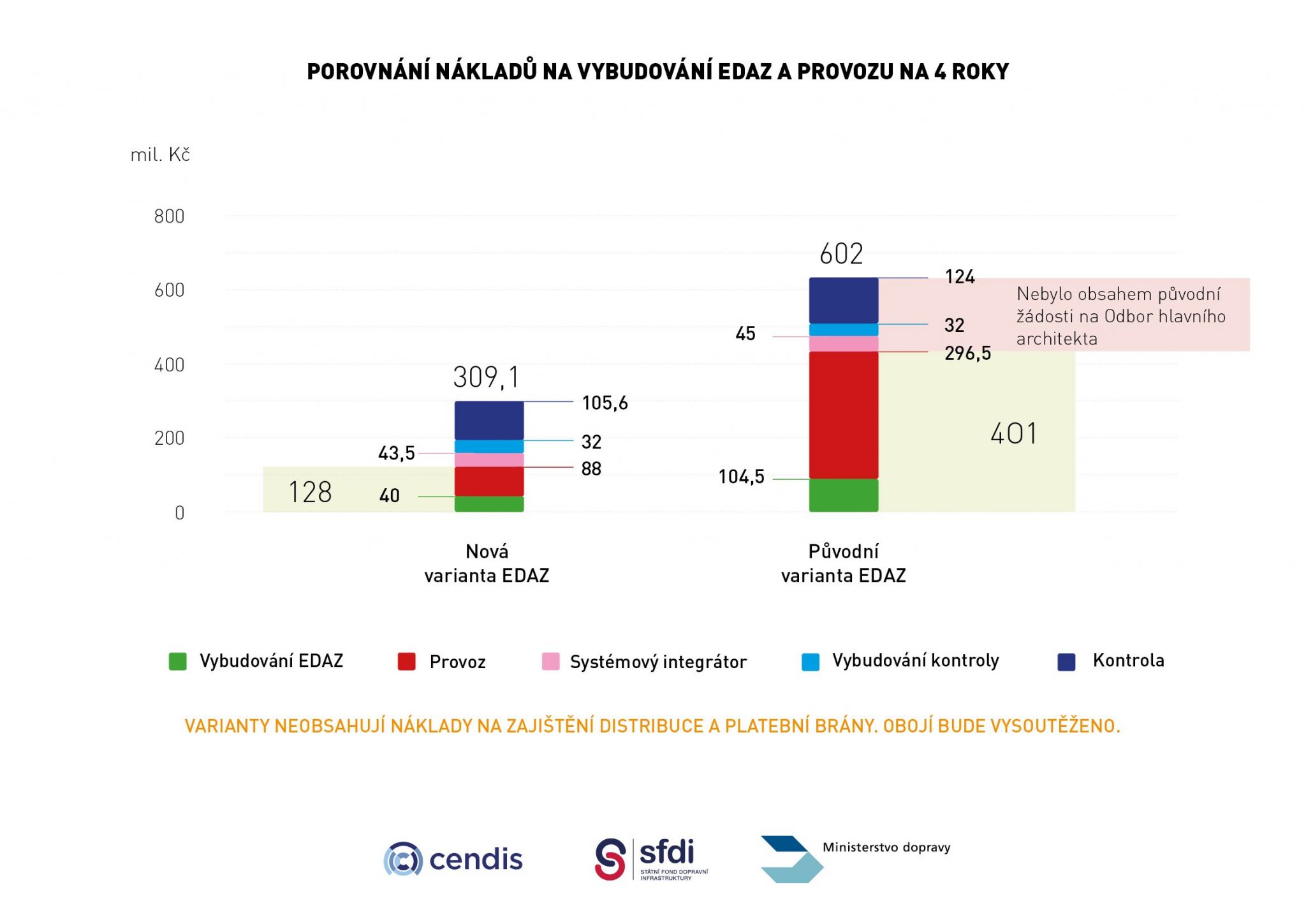 V těchto dnech by měl ministr dopravy, průmyslu a obchodu Karel Havlíček (ANO) dostat na stůl návrh Státního fondu dopravní infrastruktury (SFDI) na systém pro distribuci elektronických dálničních známek. Tato část celého komplexu vzájemně provázaných částí systému Elektronických dálničních známek (EDAZ) je poslední, o níž toho dosud není moc známo. Upřesnění odhadu její ceny také upřesní celkovou sumu. Dosud se nahlas mluvilo o 128 milionech a jen „pod čarou“ o celkové úspoře okolo půl miliardy korun. Původní systém EDAZ měl stát okolo 1,3 miliardy bez DPH. Z toho tedy vychází, že systém připravovaný pod ministrem Havlíčkem bude stát okolo 800 milionů. Připravují jej dva státní podniky – CENDIS a Státní fond dopravní infrastruktury (SFDI) ve spolupráci s vládním zmocněncem pro digitalizaci Vladimírem Dzurillou a projektem Digitální Česko.